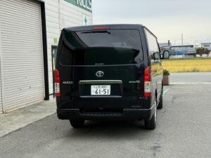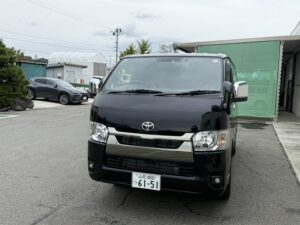 隼次号ハイエース🚙ダークプライムⅡ(スパークリングブラックパールクリスタルシャイン)が納車されました✨🤩前車は20万kmオーバーまで使用。今までに無いRICCSイメージ一新し紺色にしました。若手会社イメージ変更、大切に使用して下さい。ヤンキー使用にはしないで下さい😎