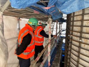 (株)平尾工務店【木ノ沢橋】の安全パトロールをリックス(株)安全協議会にて実施しました。現場での冬期の寒さ対策、害獣(熊)対策、換気・シンナー対策、品質(練上がり温度.フロー値)を確認行いました。また、年末までの工程と年明けからの工程を打合せ行いました。冬期での統一した品質・現場管理を安全第一に行っていきます。